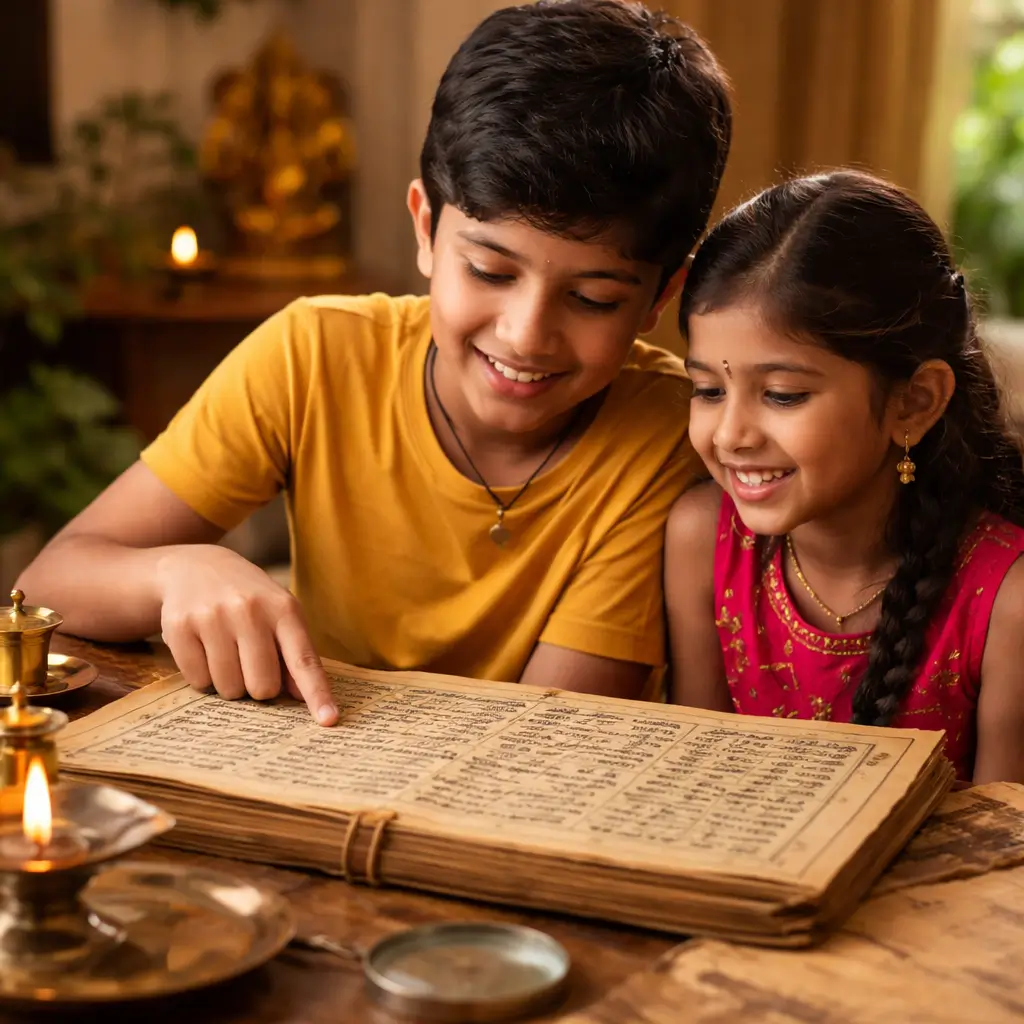 In Nadi astrology, a person’s thumb impression is used to search and identify the correct leaf. Once the matching leaf is found, the predictions are read and explained. The leaf may also suggest spiritual remedies such as Pooja, mantras, charity, or temple visits to reduce life obstacles.